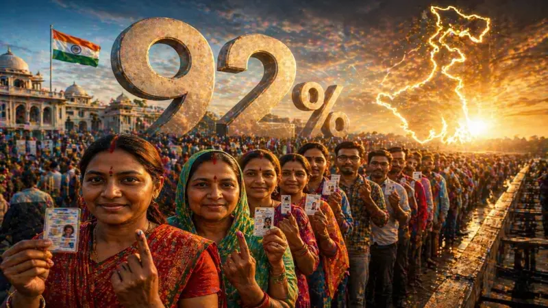 West Bengal Election 2026: पश्चिम बंगाल विधानसभा चुनाव 2026 के पहले चरण में 92% मतदान ने राजनीतिक हलकों में हलचल बढ़ा दी है। क्या यह बदलाव का संकेत है या हाई-स्टेक्स मुकाबले का असर?